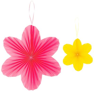 Papieren bloemen om op te hangen, kleuren: roze, geel, afmetingen: 40 cm Ø, 20 cm Ø, inhoud: 2 stuks.